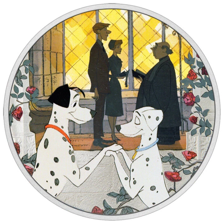 Niue: Disney 101 Dalmatiner - Love coloured 1 oz Silver 2022 Proof ist eine weitere Münze der Serie "Disney 101 Dalmatiner", die sich auf den 1961 uraufgeführten Zeichentrickfilm "101 Dalmatiner" bezieht, der auf dem Roman der englischen Autorin Dodie Smith basiert.