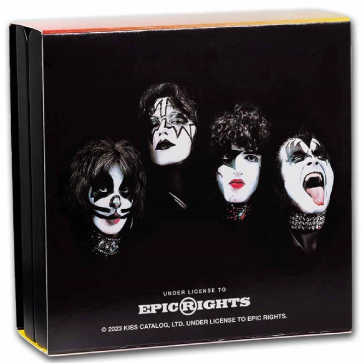 Niue: KISS 50th Anniversary 1 oz Gold 2023 ist eine einzigartige Münze, die das 50-jährige Bestehen der Musikgruppe "KISS" feiert. Die 1973 von Paul Stanley und Gene Simmons gegründete Band verdient zweifellos einen besonderen Platz in der Musikgeschichte, da sie für Musikgenres wie Rock'n'Roll, Glam Rock, Hard Rock und Heavy Metal steht.