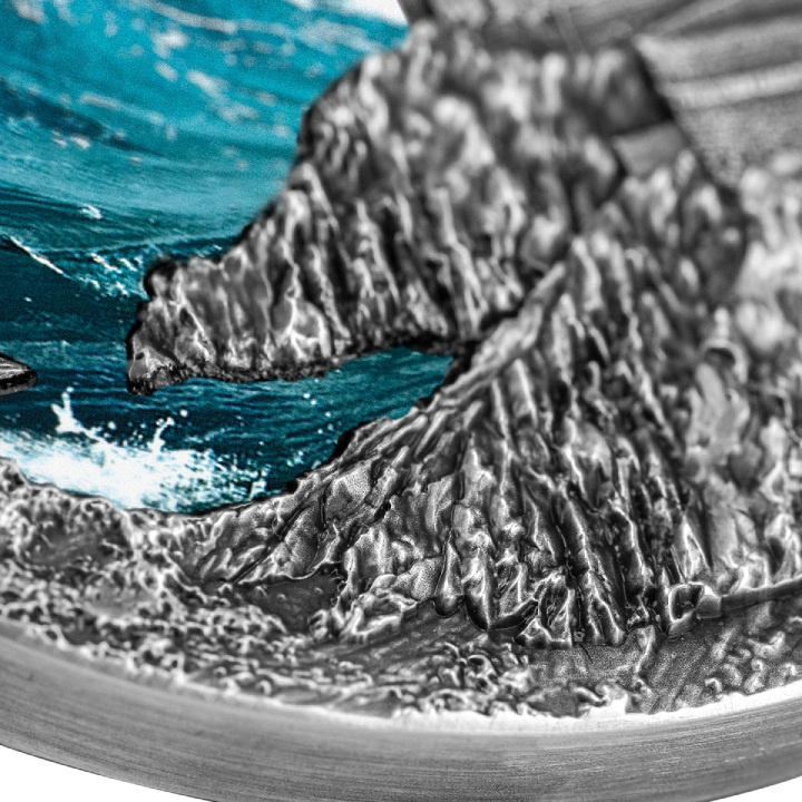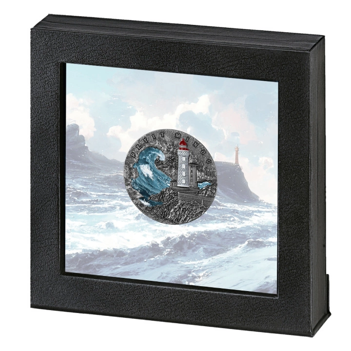 Die Niue Silbermünze: Petit Minou Lighthouse Coloured $5 Silver 2022 High Relief Antiqued Coin präsentiert eine der interessantesten Touristenattraktionen Frankreichs - den Petit Minou Lighthouse. Das Bauwerk wurde 1848 errichtet und befindet sich auf der bretonischen Halbinsel am Atlantik.