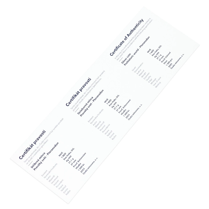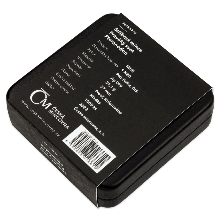 Niue: Prehistoric World - Pteranodon Coloured $1 Silver 2023 Proof ist die siebte Münze der Serie "Prehistoric World". Auf der Münze ist ein prähistorischer, pflanzenfressender Dinosaurier abgebildet. Das Tier lebte vor etwa 86-84 Millionen Jahren. Er war ein Flugsaurier mit einer Flügelspannweite von bis zu 7 Metern, was ihn zu einem der größten bekannten Flugsaurier macht. Sein Schnabel war mehr als einen Meter lang und wurde zum Fischen benutzt.