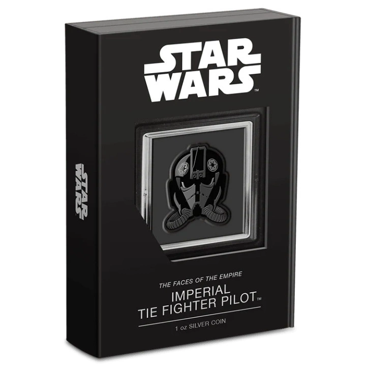 Niue: Star Wars The Faces of the Empire - Imperial TIE Fighter Pilot Coloured 1 oz Silver 2021 Proof ist eine Münze aus der Serie " The Faces of the Empire", die den Helm eines TIE Imperial Fighter Piloten zeigt.