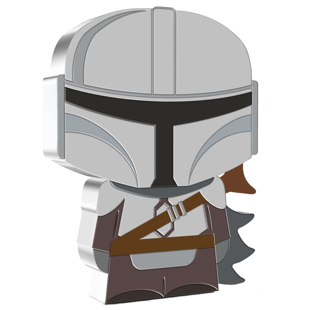 The Mandalorian Chibi Coin, koloriert, 1 Unze Silber 2021 Proof, ist eine Münze aus der Serie Star Wars – Chibi Coins. Die Münze zeigt die Figur des Mandalorianers im charakteristischen Chibi-Stil mit großem Kopf und kleinem Körper, was ihr einen besonders niedlichen und verspielten Look verleiht. Geprägt wurde sie aus einer Unze reinen Silbers mit Feingehalt 999 in Proof-Qualität von der New Zealand Mint. Die Auflage beträgt 2.000 Stück, und jedes Exemplar wird in der originalen Herstellerverpackung zusammen mit einem Echtheitszertifikat geliefert.