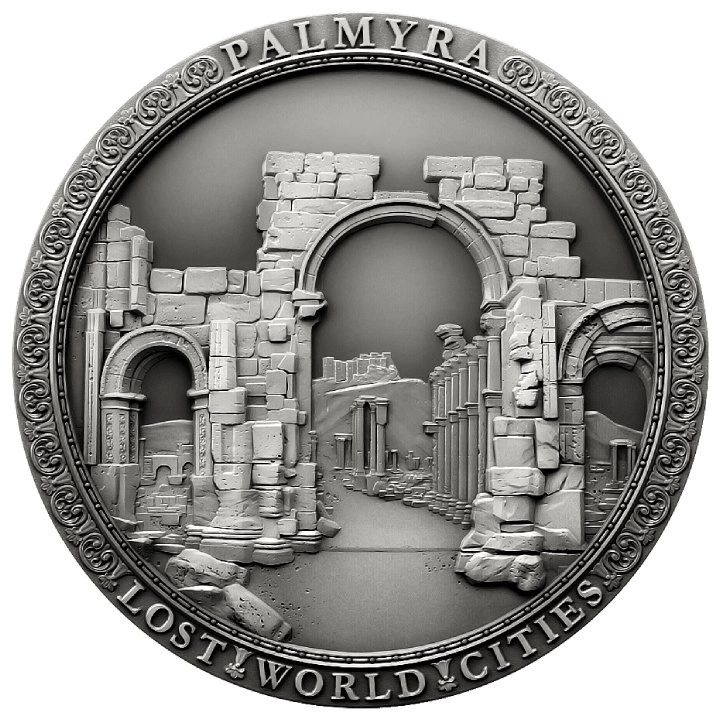 Niue: The Last Look on Palmyra $2 Silver 2021 High Relief Antiqued Coin ist ein äußerst interessantes Sammlerstück, das die Stadt - Palmyra ist eine antike Stadt im Norden Syriens, die seit dem 18. Sie wurde erstmals im zweiten Jahrtausend v. Chr. erwähnt. Das heutige Palmyra gehört zum UNESCO-Weltkulturerbe.