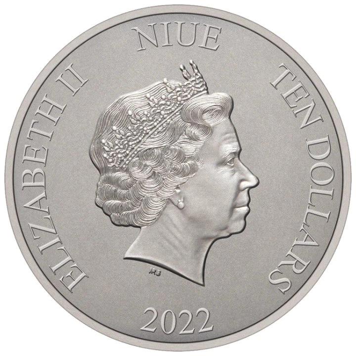 Die Vorderseite der Silbermünze zeigt das Bildnis von Königin Elisabeth II., die Inschrift "ELIZABETH II", "NIUE" sowie den Nennwert und das Ausgabejahr der Münze. Die Vorderseite wurde von Ian Rank-Broadley entworfen.