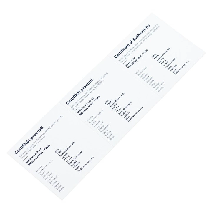 Niue: The Milky Way - Pluto $1 Silver 2022 Proof ist die erste Münze der Serie "The Milky Way". Die Münze zeigt Pluto, den letzten großen Körper im Sonnensystem. Der nach dem griechisch-römischen Gott der Unterwelt benannte Pluto wurde 1930 entdeckt und war der neunte Planet des Sonnensystems. Die astronomische Klassifizierung wurde jedoch geändert und der ferne Körper wurde zurückgestuft - 2006 wurde er als so genannter Zwergplanet eingestuft.