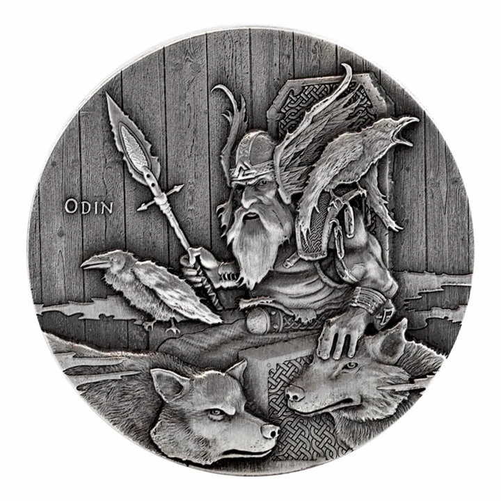 Die Niue: Vikings - Odin 2 oz Silver 2015 Proof Antiqued Coin ist eine Münze, die sich auf die skandinavische Mythologie bezieht. Die Mythologie ist aufgrund ihrer faszinierenden Figuren - Götter, Göttinnen, aber auch Trolle und Zwerge, die übernatürliche Kräfte und Eigenschaften besitzen - oft ein Motiv für Filme, Fernsehserien und Comics. Das Produkt stammt aus der Serie Vikings: Gods, Kings, and Warriors.