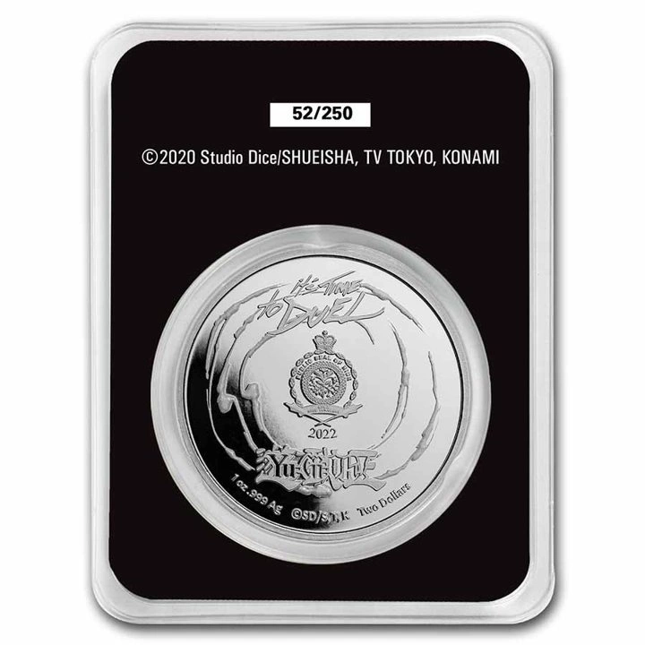 Niue: Yu-Gi-Oh! Seto Kaiba Coloured - 25th Anniversary 1 Ounce Silver 2022 Slab ist eine Silbermünze, die das Sammel- und Anlageportfolio des Käufers bereichern kann. Die Münze feiert und erinnert an das 25-jährige Jubiläum von Yu-Gi-Oh! Im Jahr 1996 war Yu-Gi-Oh! ein japanischer Manga über ein Kartenspiel. Zwei Jahre später wurde eine Anime-Serie entwickelt, der das Kartenspiel folgte. Seto Kaiba ist der Protagonist der Manga-Serie Yu-Gi-Oh!