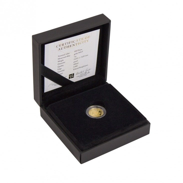 Ekskluzywna moneta inwestycyjna. Wyłączne prawo udzielania koncesji na produkcję tej monety posiada Centralny Bank Armenii, jednakże za produkcję odpowiedzialna jest prywatna, niemiecka mennica Leipziger Edelmetall Verarbeitung. Jako oficjalna waluta Republiki Armenii podlega ścisłej kontroli: jakości, wagi i czystości, dzięki czemu otrzymujemy produkt o najwyższej jakości i czystości złota .9999