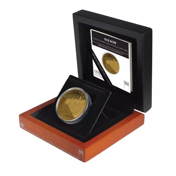 Old Acre 1 oz Gold 2022 Prooflike ist die dritte Münze der Serie "Ancient Cities of The Holy Land". Die Stadt Akko liegt an der Nordküste Israels und ist eine der ältesten Hafenstädte der Welt. Die Altstadt von Akka grenzt an das Mittelmeer und ist von einer Mauer umgeben.