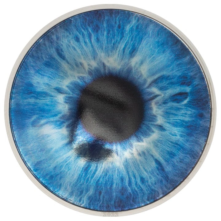 Die Palau Silber Sammlermünze: Coloreyezed - Ocean Blue coloured 1 oz Silver 2022 Proof ist das erste Stück der "Coloreyezed"-Serie, die die Magie und Anziehungskraft des blauen Auges einfängt. Die Kombination aus raffinierter Farbgebung und glänzenden Bereichen lässt das ozeanblaue Auge real erscheinen.