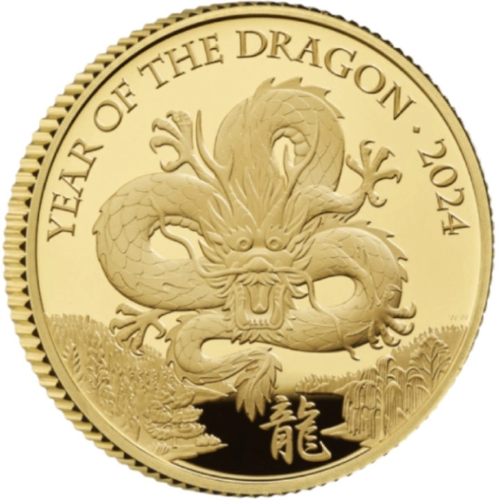 Die Münze wurde aus Au.9999 Gold mit einem Gewicht von 1/4 Feinunze und einem Durchmesser von 22 mm im Proof-Standard hergestellt. Für die Ausgabe der auf 388 Stück limitierten Münzen ist die renommierte Prägeanstalt The Royal Mint verantwortlich. Bei der Prägung des Jahres des Drachen 2024 handelt es sich um ein Produkt, das von der britischen Regierung garantiert wird und im Land des Ausstellers als vollwertiges gesetzliches Zahlungsmittel gilt. Die Vorderseite der Münze Year of the Dragon ist mit dem Konterfei von König Karl III. des Vereinigten Königreichs sowie dem Nennwert und der Jahreszahl verziert und wurde von Martin Jennings entworfen.