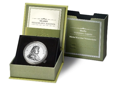 Skarby Stanisława Augusta – 50 zł Michał Korybut Wiśniowiecki to srebrna moneta ukazująca Króla Polski i wielkiego księcia litewskiego panującego w latach 1669–1673 oraz pochodzącego z dynastii Wiśniowieckich. Srebrny walor z 2021 roku jest kolejnym już egzemplarzem tworzącym znakomitą serię Skarby Stanisława Augusta. Wspomniana seria została wybita po raz pierwszy w 2013 roku i stanowi odwzorowanie osiemnastowiecznej kolekcji medalierskiej. Pierwowzór został wykonany na zlecenie Stanisława Augusta Poniatowskiego oraz przedstawia 23 monarchów, którzy niegdyś zasiadali na Polskim tronie. Warto w tym miejscu dodać, iż, współczesna odsłona Skarbów Stanisława Augusta przedstawia 24 monarchów – 23 z oryginalnej królewskiej kolekcji oraz dodatkowo portret Stanisława Augusta.