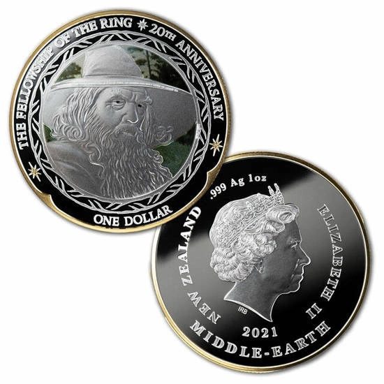 Der Herr der Ringe: Die Gemeinschaft des Rings 20-jähriges Filmjubiläum 3x1 Unze Silber 2021 Proof ist ein Produkt, das an das 20-jährige Jubiläum des Herr der Ringe-Films erinnert und dieses feiert. Der Herr der Ringe-Film ist eine Trilogie, die aus den Filmen Der Herr der Ringe: Die Gemeinschaft der Ringe, Der Herr der Ringe: Die zwei Türme und Der Herr der Ringe: Die Rückkehr des Königs besteht. Die Filme wurden in den Jahren 2001, 2002 und 2003 gedreht und basieren auf den Romanen von J.R.R. Tolkien.