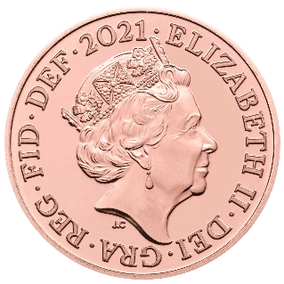 Awers monet przedstawia wizerunek Królowej Wielkiej Brytanii Elżbiety II w koronie.