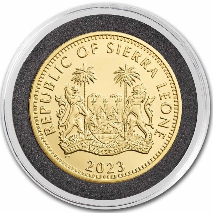 Die Münze wurde aus Au.9999 Gold geprägt, wiegt 1 Feinunze und misst 32,7 mm im Durchmesser. Die exzellente Pobjoy Mint ist für die limitierte Ausgabe von 50 Stück verantwortlich. Das Produkt ist ein vollwertiges gesetzliches Zahlungsmittel in der Republik Sierra Leone.