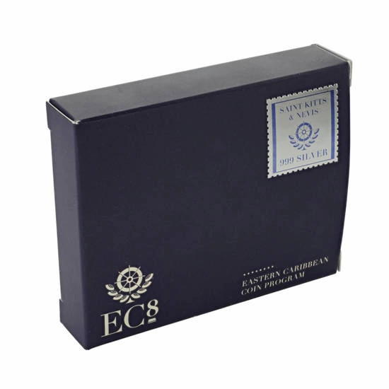 Die Münze wurde in reinem Ag.999 Bullion geprägt, wiegt eine Feinunze und misst 39mm im Durchmesser, in Proof Standard. Die Silbermünze wurde von der Scottsdale Mint in einer geringen Auflage von nur 2.500 Stück hergestellt. Das Produkt ist garantiert und gilt als gesetzliches Zahlungsmittel im Gebiet der acht Länder der Zentralbank der Ostkaribik. Die Münze wird in ihrer Originalverpackung mit einem nummerierten Echtheitszertifikat ausgeliefert.