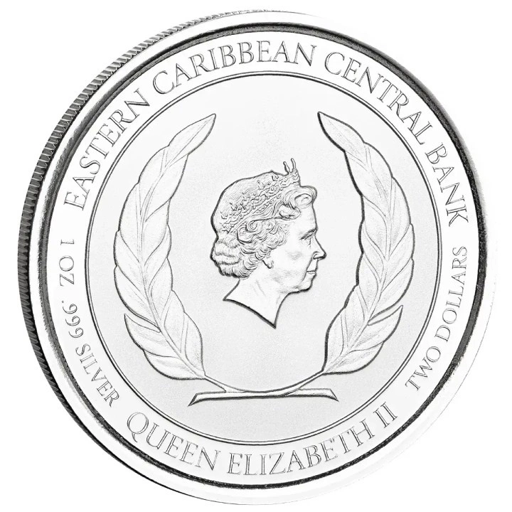 Die Münze wurde in reinem Ag.999 Bullion geprägt, wiegt eine Feinunze und misst 39 mm im Durchmesser. Die Silbermünze wurde von der Scottsdale Mint in einer geringen Auflage von nur 25.000 Stück hergestellt. Das Produkt ist garantiert und gilt als gesetzliches Zahlungsmittel im Gebiet der acht Länder der Zentralbank der Ostkaribik.