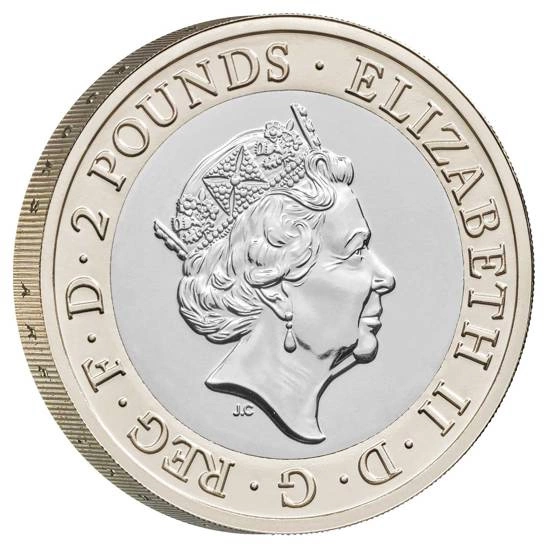 - £2 Brilliant Uncirculated, moneta posiada stop miedzionikiel oraz nikiel-mosiądź, wagę 12 gramów, średnicę 28.40mm, nominał £2.