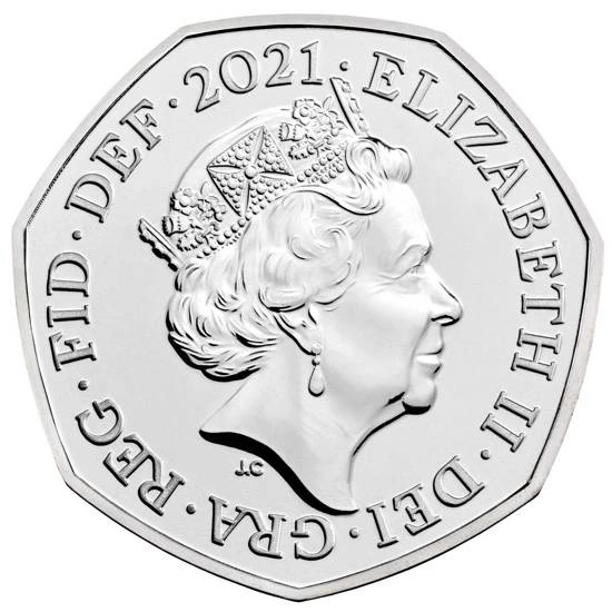 - 50p Brilliant Uncirculated Coin, moneta posiada stop miedzionikiel, wagę 8 gramów, średnicę 27.30mm, nominał 50p.