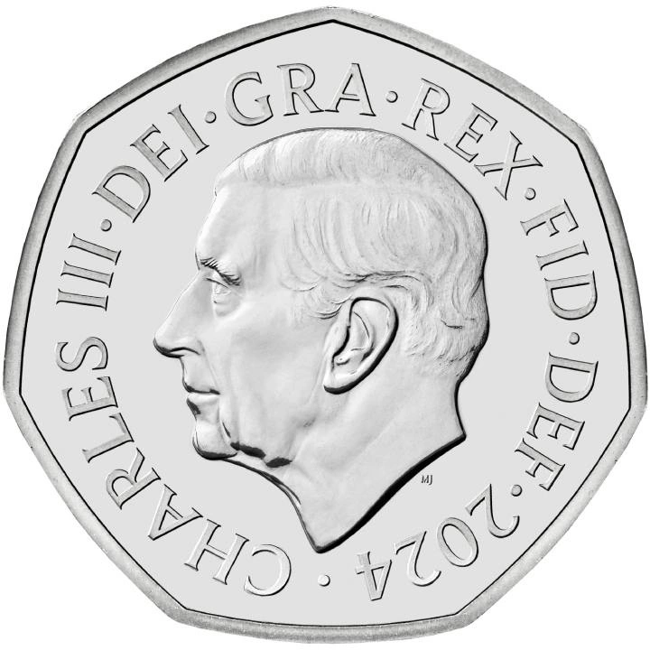 - Eine 50p Brilliant Uncirculated Münze, die eine Kupfernickel-Legierung hat, ein Gewicht von 8 Gramm, einen Durchmesser von 27,3mm.