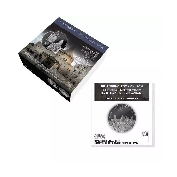 Die Verkündigungskirche 1 oz Silber 2021 ist die dritte Münze der Serie "Stätten des Heiligen Landes", die die "Verkündigungskirche", auch bekannt als "Verkündigungsbasilika", abbildet. Sie ist eine der heiligsten Stätten der christlichen Welt.