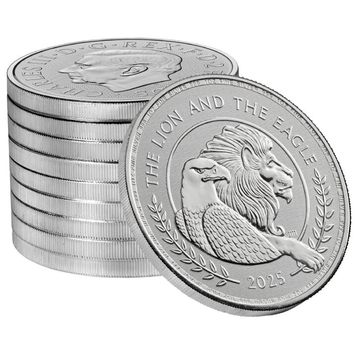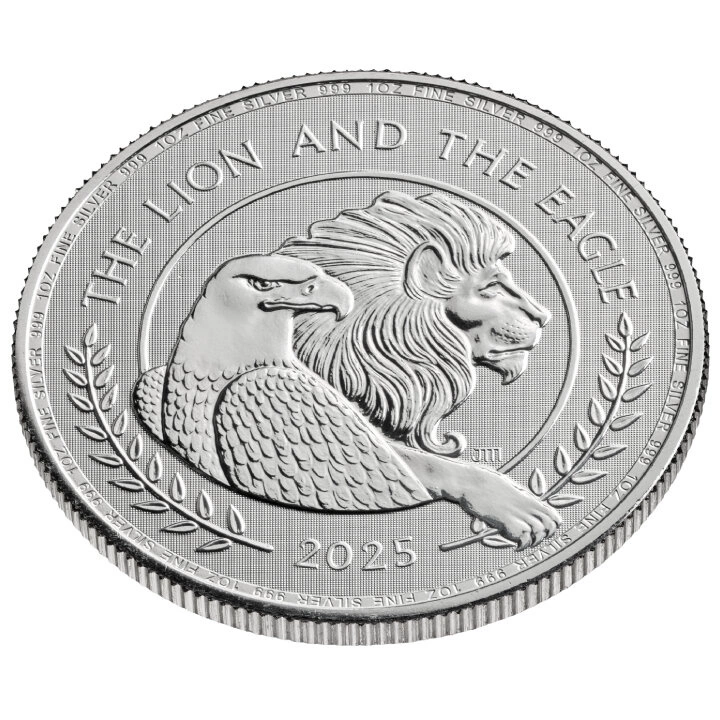 Die Münze The Lion and The Eagle 1 Unze Silber 2025 vereint zwei Ikonen der numismatischen Kunst: den britischen Löwen und den amerikanischen Adler. Das Designteam der Royal Mint arbeitete zusammen mit John M. Mercanti, um ein originelles Münzdesign zu schaffen.
