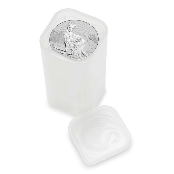 Die Next Generation: Mother and Baby Kangaroo 2 ounce Silver 2023 ist eine Valentinsmünze, die ein weibliches australisches Känguru mit seinem Baby zeigt. Zu den bekanntesten und beliebtesten Tieren Australiens gehören Emu, Känguru, Koala, Kookaburra, Wombat, Tasmanischer Teufel und Dingo. Das Produkt ist die 6. Münze der Serie The Next Generation. Auf allen Münzen dieser Serie sind Tierarten aus dem australischen Outback abgebildet.