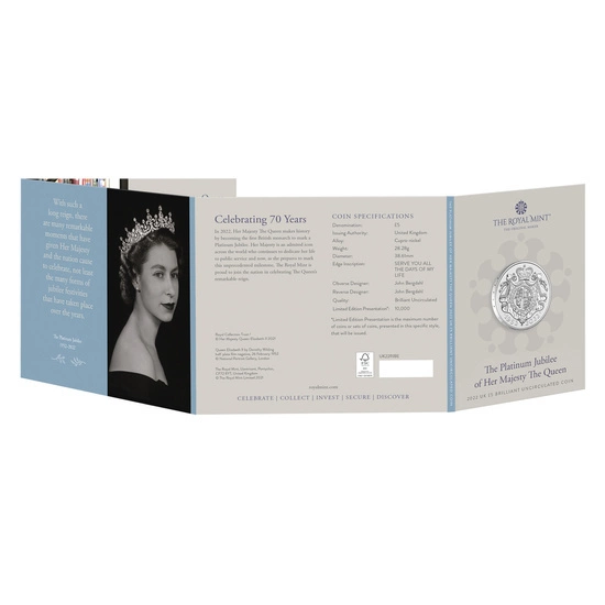 Moneta The Platinum Jubilee of Her Majesty The Queen to unikatowy produkt, który oddaje hołd 70. rocznicy służby Jej Królewskiej Mości, Królowej Elżbiety II. Królowa Elżbieta II sprawuje służbę od 1952 roku. W 2022 roku obchodzony jest platynowy jubileusz.
