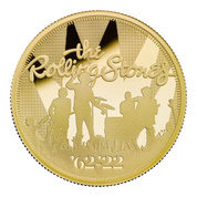 Die Rolling Stones 2 Unzen Gold 2022 Proof ist ein einzigartiger Wert zur Feier des 60-jährigen Bestehens der Musikgruppe "The Rolling Stones". Die Band besteht aus Ikonen der britischen Musik, die sich zweifellos ihren Platz in der Geschichte des Rock 'n' Roll als wahre Musiklegenden verdient haben.