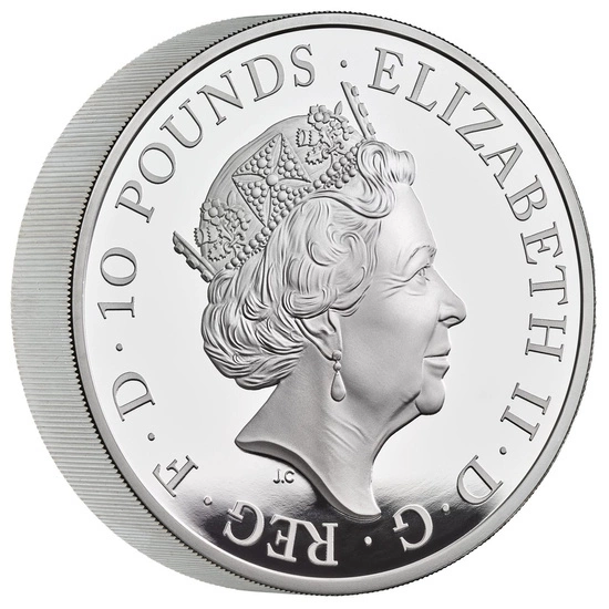Walor bity jest z czystego srebra próby Ag.999, o wadze 10 uncji trojańskich oraz o średnicy liczącej 65mm, w standardzie proof. Ponadto, ten niezwykły egzemplarz został wyprodukowany przez mennicę The Royal Mint. Egzemplarz posiada indywidualne, certyfikowana opakowanie.