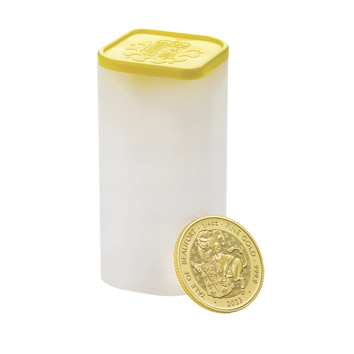 Die Münze Royal Tudor Beasts: The Yale Of Beaufort 1/4 oz Gold 2023 ist die zweite Anlagemünze der zweiten Serie von The Royal Tudor Beasts. Die Sammlermünze zeigt das Bild eines der zehn heraldischen königlichen Tiere - den Löwen von England. Das Produkt ermöglicht das Interesse an der äußerst interessanten Geschichte Großbritanniens.