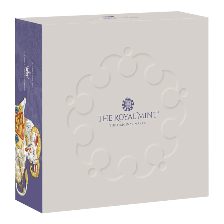 Die Münze wird in reinem Au.9999 Gold geprägt, wiegt 5 Feinunzen und misst 50mm im Durchmesser, in Proof Standard. Darüber hinaus wurde dieses bemerkenswerte Stück von der Königlichen Münze hergestellt und wird in einer individuellen Originalverpackung geliefert.