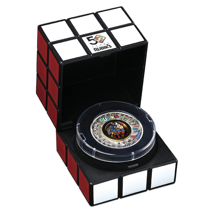 Srebrny walor Tuvalu: Kostka Rubika 50. rocznica kolorowany 2 uncje Srebra 2024 Antiqued Coin to wyjątkowa propozycja przygotowana przez australijską mennicę The Perth Mint.