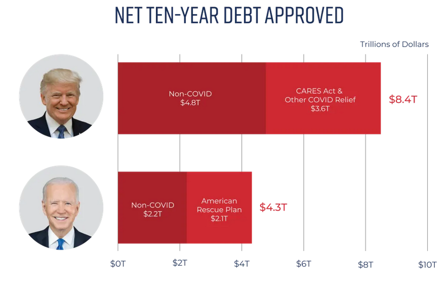 Debt in making by recent US presidents. Source: https://www.crfb.org/papers/trump-and-biden-national-debt