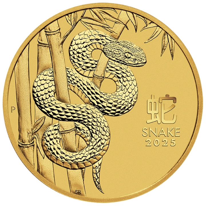 The Perth Mint's Bullion Value: Lunar III - Year of the Snake 1/10 oz Gold 2025 is the sixth release in the Lunar III series. Previous coins in the series were the Year of the Rat 2020, Year of the Ox 2021, Year of the Tiger 2022, Year of the Rabbit 2023, and Year of the Dragon 2024. The Lunar series refers to the 12 animals that represent the Chinese lunar calendar. The year 2025 belongs to the snake and is seen as a time of deep reflection, wisdom, and inner growth. Snakes have a reputation for being philosophical thinkers who are patient and prone to contemplation. The Chinese zodiac sign of the snake falls in the years: 1917, 1929, 1941, 1953, 1965, 1977, 1989, 2001, 2013, and 2025.