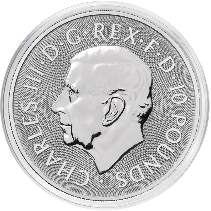 The coin is minted from pure silver of Ag.9999 fineness, weighs 10 troy ounces, and has a diameter of 89 mm. The product has an unlimited mintage. Moreover, this extraordinary piece was produced by The Royal Mint.