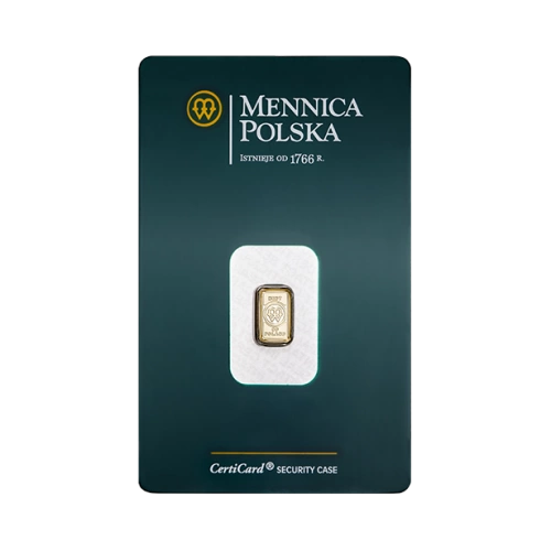 Sztabka Złota 1 gram Mennica Polska "Złoto jest najbardziej kowalne spośród wszystkich metali; jeden gram złota może być rozbity na arkusz o powierzchni 1 m². Płatek złota może być rozbity do tego stopnia, że staje się półprzezroczysty. Powszechne stopy kolorowego złota, takie jak różowe złoto, mogą być wytworzone poprzez dodawanie różnych ilości miedzi i srebra. Stopy zawierające pallad i nikiel tworzą tzw. „białe złoto”, które często jest wykorzystywane w jubilerstwie. Mniej powszechnymi są stopy złota zawierające dodatki manganu, glinu, żelaza, irydu i innych pierwiastków, które nadają złotu bardziej niezwykłe kolory, jak na przykład niebieski. Złoto jest metalem szlachetnym o wyjątkowo dużej odporności chemicznej, znacznie większej niż miedź i srebro. W przeciwieństwie do nich, na powietrzu nie ulega ściemnieniu. Jest też odporne na działanie większości czynników korozyjnych, dzięki czemu idealnie nadaje się do produkcji monet, biżuterii i pokryć ochronnych bardziej reaktywnych metali". Sztabki są jedną z wielu dostępnych opcji inwestycji, są zarazem jednym z najstarszych sposobów lokowania kapitału. W krajach arabskich, Indiach i Singapurze popularne są sztabki o masie wyrażanej w tradycyjnej jednostce 1 tola, ustandaryzowanej jako 5/8 uncji trojańskiej. W krajach arabskich spotykane są także sztabki o masie 1 dinar, równej standardowo 1/7 uncji trojańskiej.