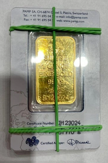 1 oz Gold Bar Pamp Suisse DamagedCertiPack