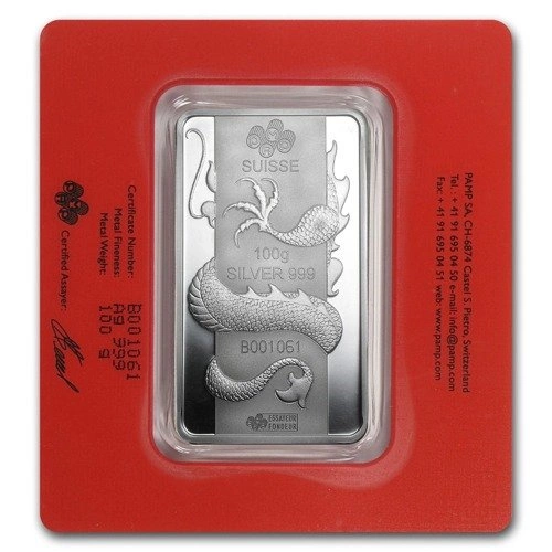 100 gram Bar Silver Lunar Year of the Dragon