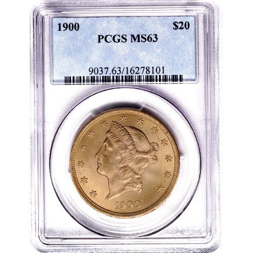 An antique gold coin ideally suited to any collector or investor.This beautiful coin was struck at 0.900 and contains 0.9675 ounces of pure gold. The obverse depicts the Goddess of Liberty, facing left, surrounded by 13 stars. Below her is the year the coin was struck. The reverse features an image of a heraldic eagle with a shield on its breast. Above it, surrounded by 13 stars, is the inscription IN GOD WE TRUST. Surrounding the whole is the inscription UNITED STATES OF AMERICA and the denomination of the coin " TWENTY DOLLARS." The reverse image was designed by James B. Longacre and was minted between 1850 and 1907..