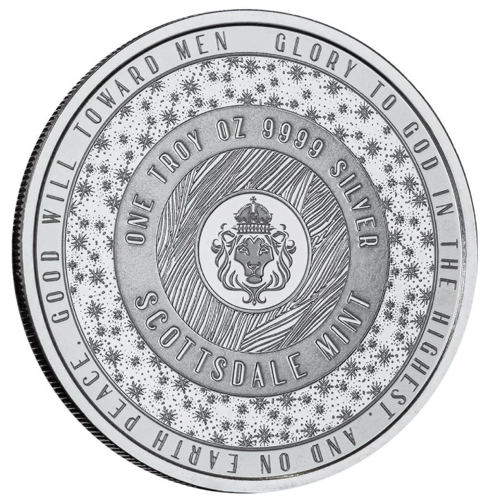 Obverse: Features the distinctive lion – the emblem of Scottsdale Mint – along with inscriptions indicating the weight and silver purity.