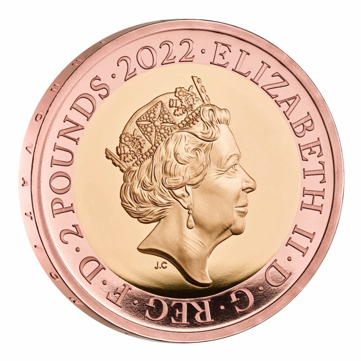 The coin is struck in yellow and rose gold Au.916.7, weighing 15.98 grams and 28.4 mm in diameter, in proof. In addition, this remarkable piece was produced by The Royal Mint. The specimen comes with individual, certified packaging. The mintage of the product is 235 pieces. The Overt depicts the likeness of Queen Elizabeth II and information on the face value and year of mintage of the coin. The designer of the obverse was Jody Clark.