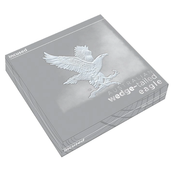 The Australian Eagle 1 Ounce Silver 2023 Proof Incused Collector's Silver Coin is a unique product that has been prepared by the renowned Australian Mint, The Perth Mint. This sterling silver coin is a highly recommended product for collectors looking to expand their unique portfolio. The 2023 coin is minted to proof incused standard, in pure Ag.9999 silver, weighing 10 troy ounces and measuring 66.1mm in diameter. The product is guaranteed by the Australian Government and is full legal tender in the issuing country. The silver coin is situated in a customised, certified packaging. The Overt of the silver coin depicts the likeness of Queen Elizabeth II of Great Britain and information about the issuing country and the coin's face value. The designer of the obverse was Jody Clark. The Rewers shows an adult eagle with outspread wings and the inscription "AUSTRALIAN WEDGE-TAILED EAGLE". In addition, at the bottom of the piece is information on the weight of the coin, the bullion proof and the date of issue. The designer of the reverse was John M. Mercant.Designer