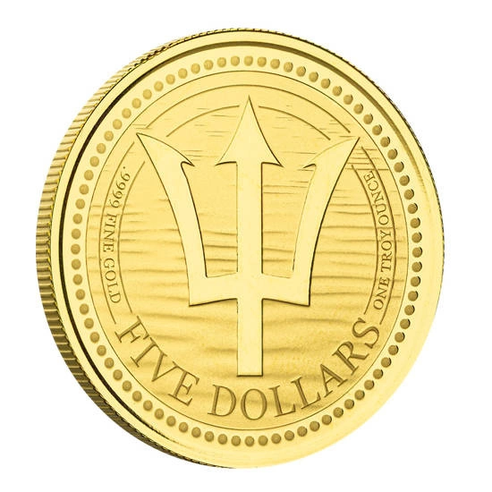 The Barbados: Trident 1 Ounce Gold 2022 coin is a unique coin that depicts the Trident. According to Greek mythology, the Trident was used by Poseidon, who was the ruler of the sea. The object was used to break up rocks in Greece to cause springs of water - the sea - to form.The 2022 specimen was produced from pure Au.9999 bullion, weighing one troy ounce and measuring 32 mm in diameter. The gold coin was produced by the Scottsdale Mint, in a low mintage of only 5,000 pieces. The product is guaranteed by the Government of Barbados and is full legal tender in the issuing country. Interestingly, the central part of the Barbados flag features the Trident.The Overt of the gold coin depicts the coat of arms of Barbados along with information on the year the coin was minted.The Reverse shows the Trident along with information on weight, bullion proof and face value.Do you need help? Do you have any questions?Ask a question and we'll respond promptly, publishing the most interesting questions and answers for others.