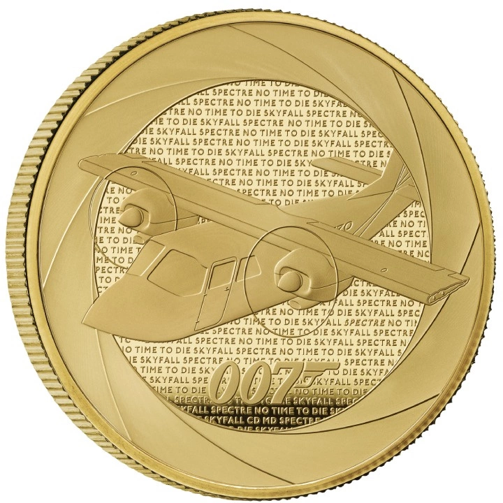 Rewers monety przedstawia samolot z filmu Spectre i logo 007, a rewers został zaprojektowany przez Matta Denta i Christiana Daviesa.