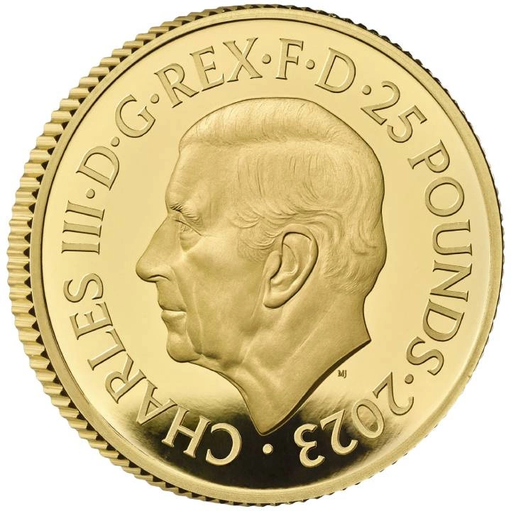 The coin is struck in pure Au.9999 bullion, weighing 1/4 troy ounce and measuring 22mm in diameter, in proof standard. The mintage of the coin is 650 pieces. In addition, this extraordinary piece was produced by The Royal Mint. The product has been housed in its original packaging. The coin is guaranteed by the UK government as to its legality, purity of bullion and origin of the metal, and is full legal tender in the issuer's country.