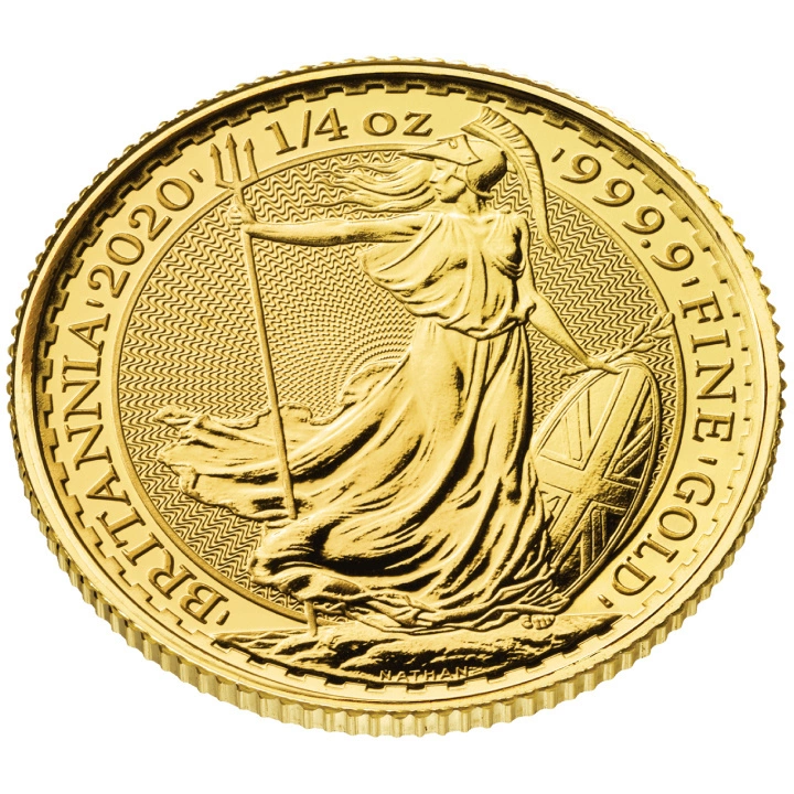 The Britannia gold bullion coin is a flagship investment product that is well known and appreciated by merchants around the world. This gold bullion coin is minted from pure 9999 fine gold, weighing 1/4 ounce. The British mint, The Royal Mint, is responsible for its production. The obverse depicts the image of the Queen of England, Elizabeth II, wearing a crown. It also shows the face value of the coin. The reverse shows the traditional figure of Britannia, armed with a trident and a shield. In addition, information about the purity of the bullion and the weight of the coin can be found on it.Packaging for the product