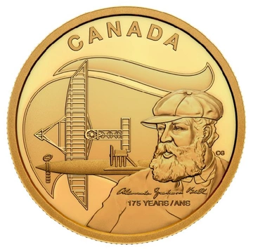 Canada: 175. alexander Graham Bell's birth anniversary 1 ounce gold 2022 Proof is an interesting product that commemorates 175. the anniversary of Alexander Graham Bell's birth. The man lived from 1847 to 1922. He was the inventor of the telephone.