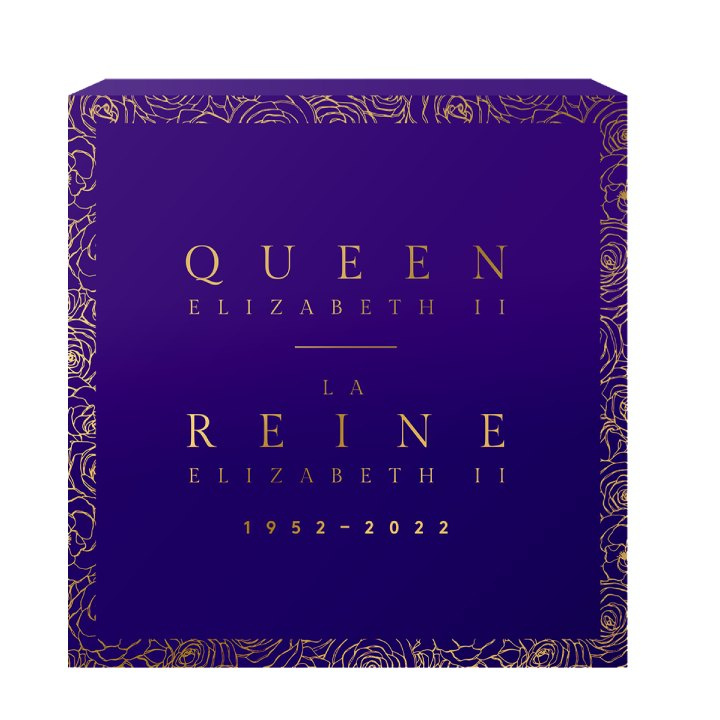 The obverse shows four gilded images of Queen Elizabeth II in profile and the inscriptions, "ELIZABETH II D G REGINA", "1952-2022".