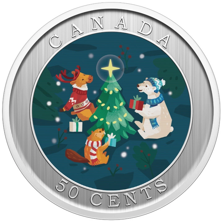 Canada: Trimming the Holiday Tree coloured 50 cents 2024 Specimen Lenticular Coin